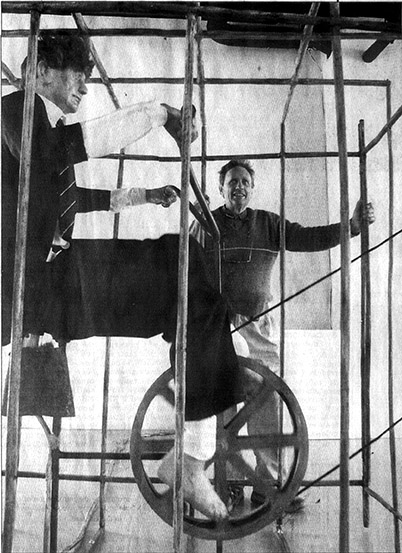 Installation artist Arthur Wicks keeps an eye on his Artist Trapped in Artaud's Cage at CMAG. Picture: Kate Callas