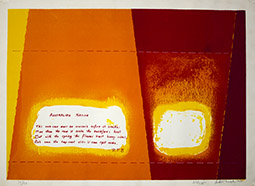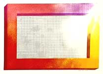 This group of silkscreen prints are a transition between the earlier photographic and abstract geometric images at the group of prints which emerge from the performances. These three prints are based on the structure of the silkscreen frame itself and play with that object. The All the King's Men Screen includes a photographic image from the murderous Cambodian Pol Pot army in the early 70s. |